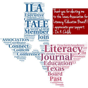 The TALE Board election ended, and I am happy to announce my election to the Texas Association for Literacy Education! It is such an honor, and I am elated that such seasoned and respected literacy professionals from across the state see me as a great representative to be a leader within the organization. I am submitting the biography and photo below to the official TALE website (look for it to be added soon):
